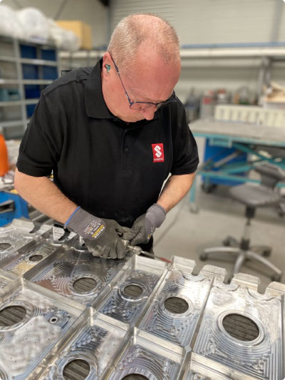 - Travail de la pièce brute après usinage : séparation du bloc, découpe, meulage, perçage.